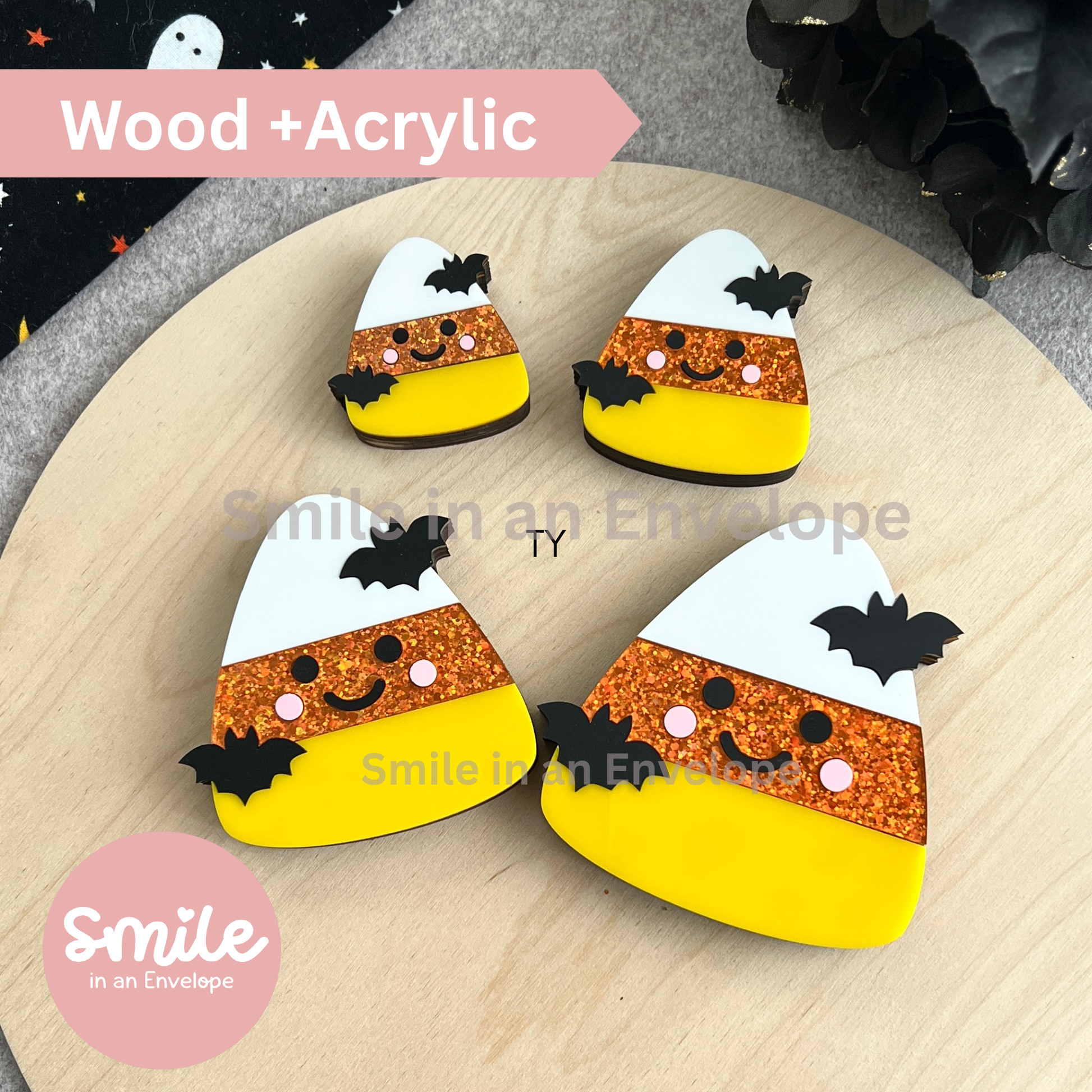 Listing is for ONE Candy Corn with Bats Shelf Sitter ONLY